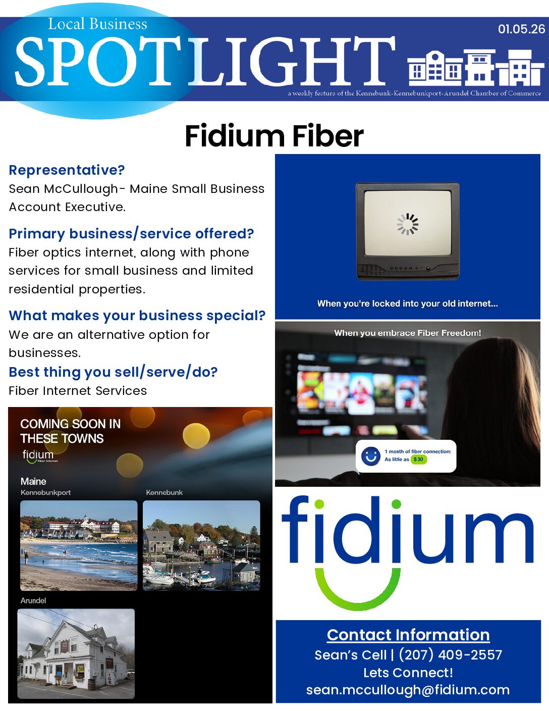 Fidium Fiber is bringing their service to Kennebunk, Kennebunkport, and Arundel. They offer fiber optics internet for both residential and commercial properties, along with phone services for small businesses.