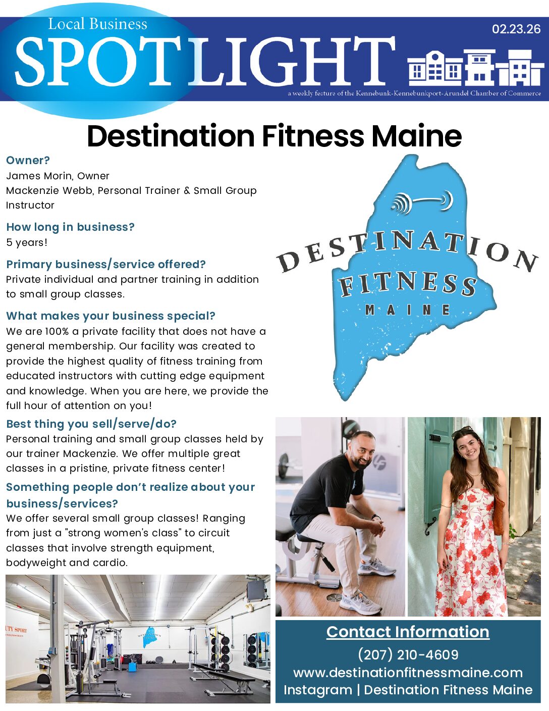 Destination Fitness, located in Kennebunk, offers personal training and small group fitness classes. Their facility boasts cutting edge equipment and educated instructors ready to help you reach your highest fitness potential.
