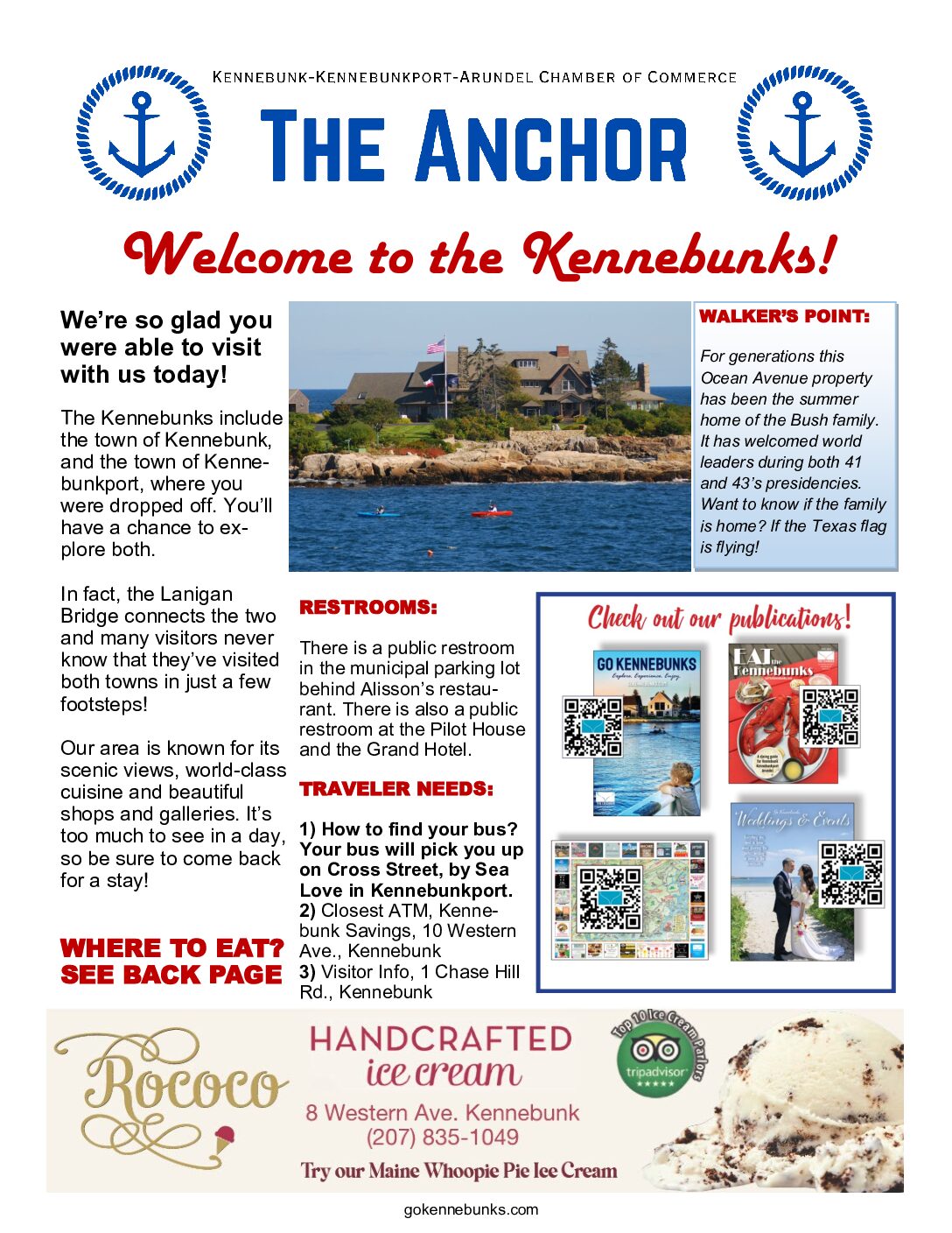 Why should you contact us? Our greeters will meet your bus and provide maps and The Anchor information sheet which details restroom, dining and important information for visitors.